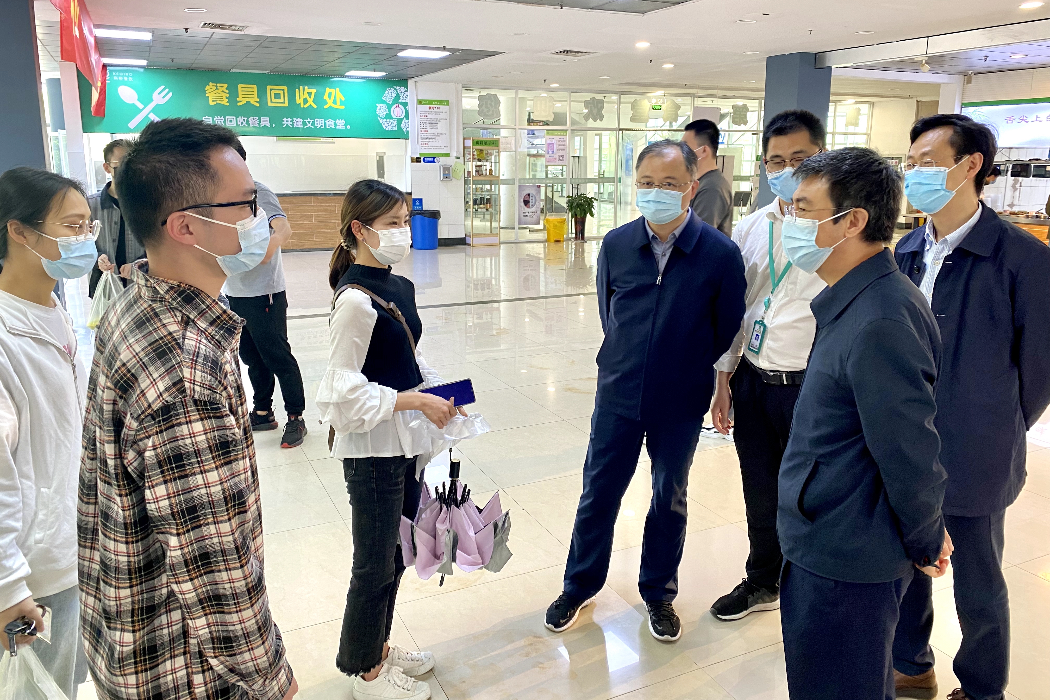 4月27日上午,在独墅湖校区住校值班的熊思东校长带队看望在校学生,详细了解同学们近期学习、生活状态,向同学们送去亲切慰问与关怀,并检查校园封闭管理期间各项工作开展情况,住校值班的党委副书记王鲁沛陪同参加相关活动。